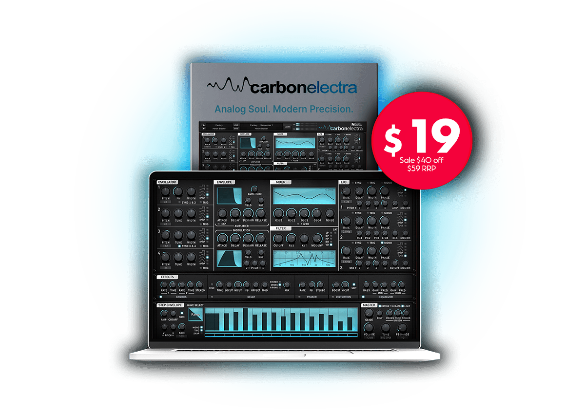 Carbon Electra is a bold, easy-to-use synth designed by producers, for producers. At its core are four powerful oscillators driving a subtractive engine that fuses vintage analogue routing with modern creative tools. It’s approachable enough to learn on, yet deep enough to handle serious sound design.
