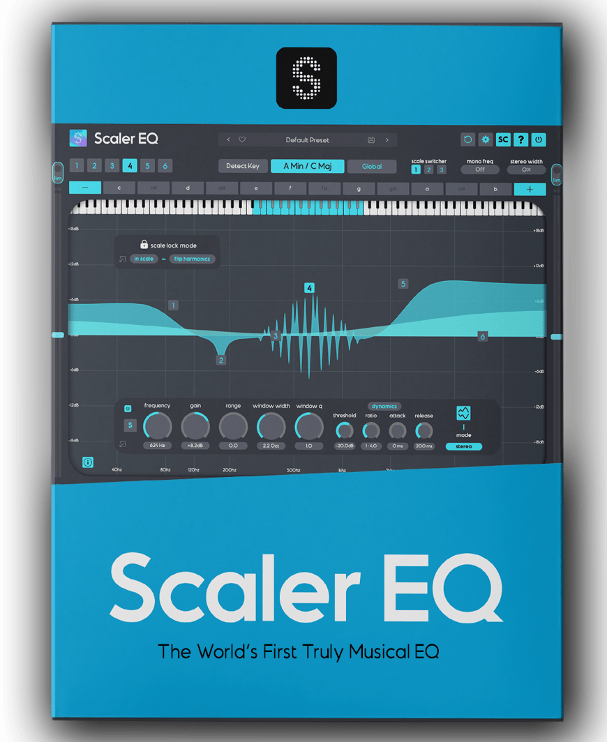 Scaler EQ delivers the first truly musical EQ—a groundbreaking tool that enhances frequencies in key with your track while suppressing out-of-key elements. Unlike traditional equalizers, Scaler EQ ensures every boost and cut maintains harmonic integrity, offering warmer lows, clearer mids, and sweeter highs.