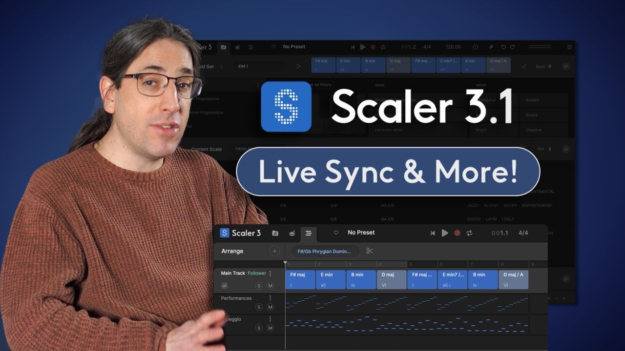 - Sync your Main Track chords across all Scaler 3 instances with Live Sync. Change one chord in the “leader” and all “follow” instances will respond, ensuring consistent progressions and simplifying workflow with DAWs that don’t support multi-channel MIDI out, like Ableton.